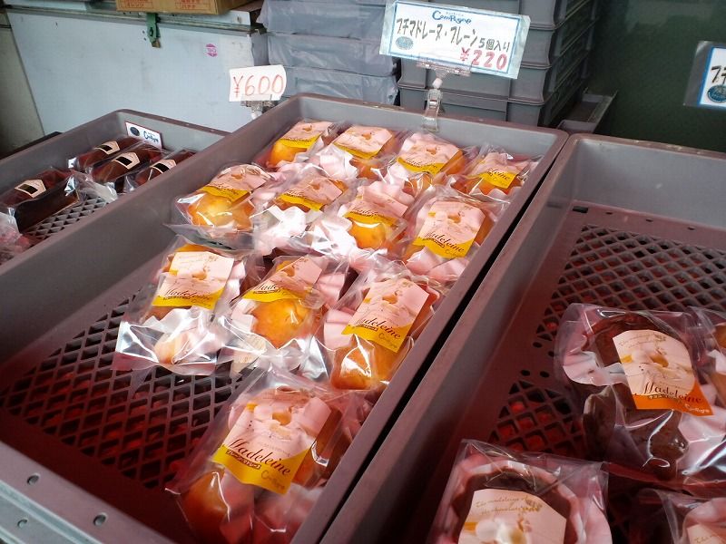 美味しそうなマドレーヌがいくつかのトレーに並べられていました。これ人気なんでしょうか?かなり売れている形跡があります。この写真撮影中にもガサッといっぱい買っていく人がいました。