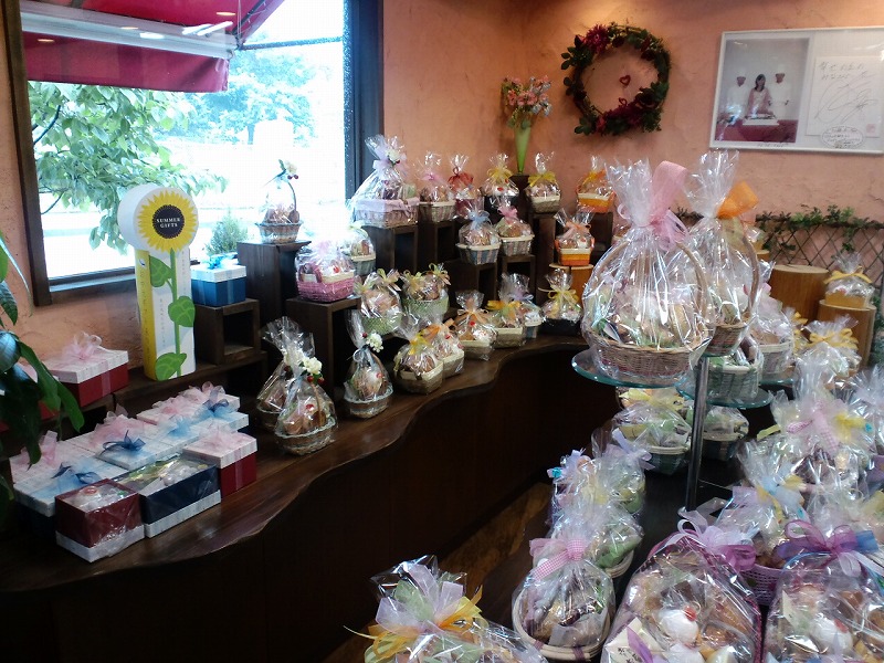 こちらはお店の中です。とっても明るい店内です。おいしそうなお菓子がならんでいますよ〜(^∀^)ちなみに奥に貼ってある写真に写っているのは加藤あいちゃんでーす(^∀^)こちらのお店は加藤あいちゃんもご来店のお店なんですよ!