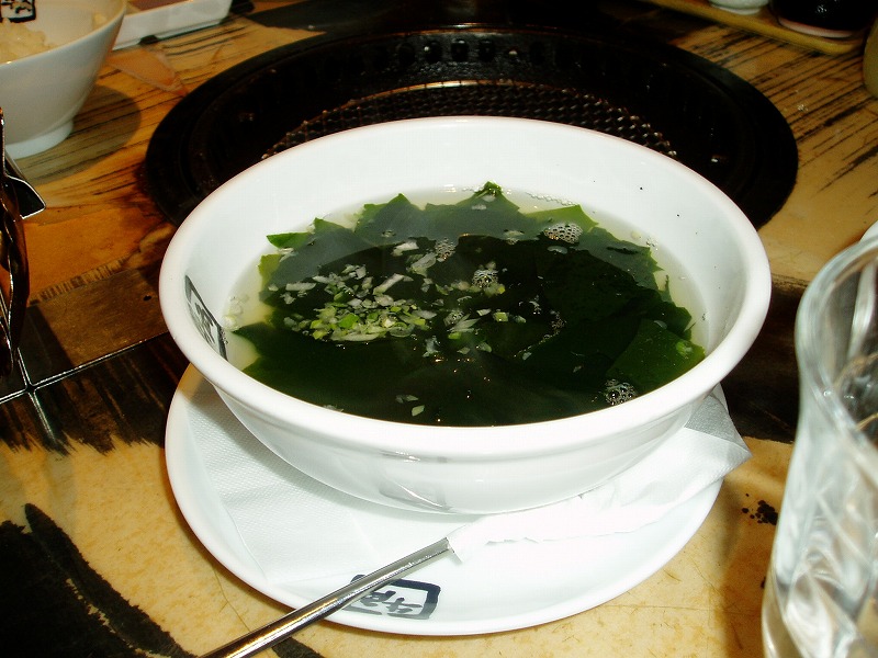ごはんセットにしたのでスープ付でした。スープは玉子かわかめをチョイス出来ます。人気はやっぱりわかめ(・∀・)スープ皿は小さくないですよ。具のわかめもご覧の通りたくさん入っています。内の奥さんは七味唐辛子を入れすぎてスープ飲めなくなってました(笑)