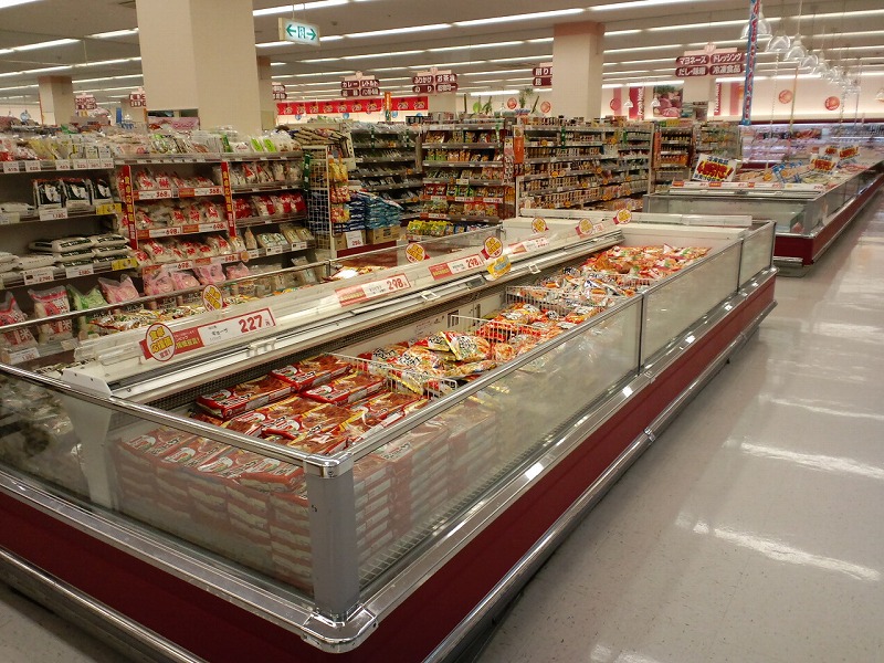 こちらは本館1階の食品フロアです。写真は冷凍食品が写っていますがその奥に調味料関係の棚があります。ココには他の店舗では無いようなモノもあります。お料理好きの方要チェックです。