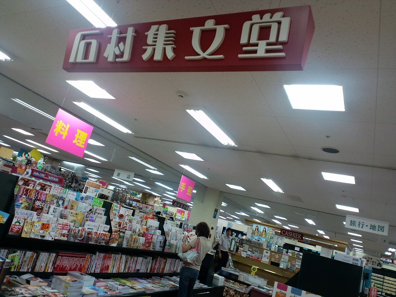 別館2階の石村集文堂(本屋)です。こちらの2階のスペースは他にもAKドラッグ、ダイソー、マクドナルドが入っています。こちらの本屋さんの脇には小さな休憩所及びプレイスペースがあります。店舗内の待ち合わせには最適な場所です。