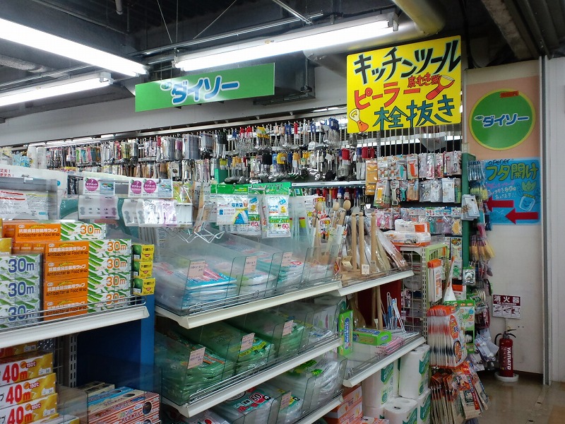 同じく3階のダイソーです。説明は不要ですね。こちらも広大な面積に100円商品が並びます。今は日本を代表する商売の1つだそうです。ココの特徴は食器が比較的に多いような気がします。この日はビニール製のCDケース(24枚入る)を買っちゃいました(・∀・)